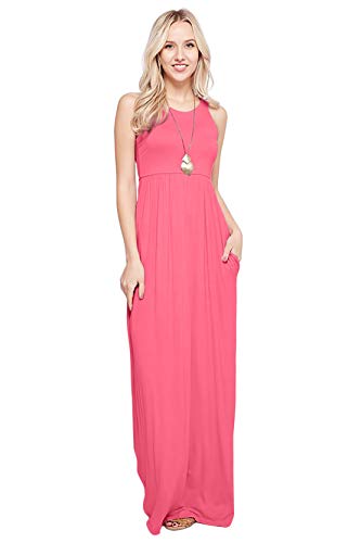 Damissly Women’s Floral Maxi Dresses Sleeveless V-Neck Loose Plain Casual Long Dresses with Pockets